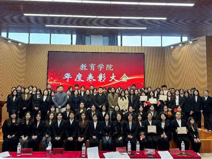 为树立先进典型,表彰优秀学子,凝聚奋进力量,激励全院学生砥砺前行、追求卓越,教育学院于2025年12月17日13:40在体育馆报告厅举行学生表彰大会。本次大会由马金铭老师主持,教育学院党总支书记汤鹏宇老师,辅导员刘皓源老师、高馨老师、王一波老师、王禹佳老师、朱滢羽老师共同出席本次大会。会议伊始,马金铭老师提到,年度表彰大会不仅是对同学们过去一年努力的肯定,更是一次传递榜样力量的盛会,希望大家能以今天为新起点,见贤思齐、...