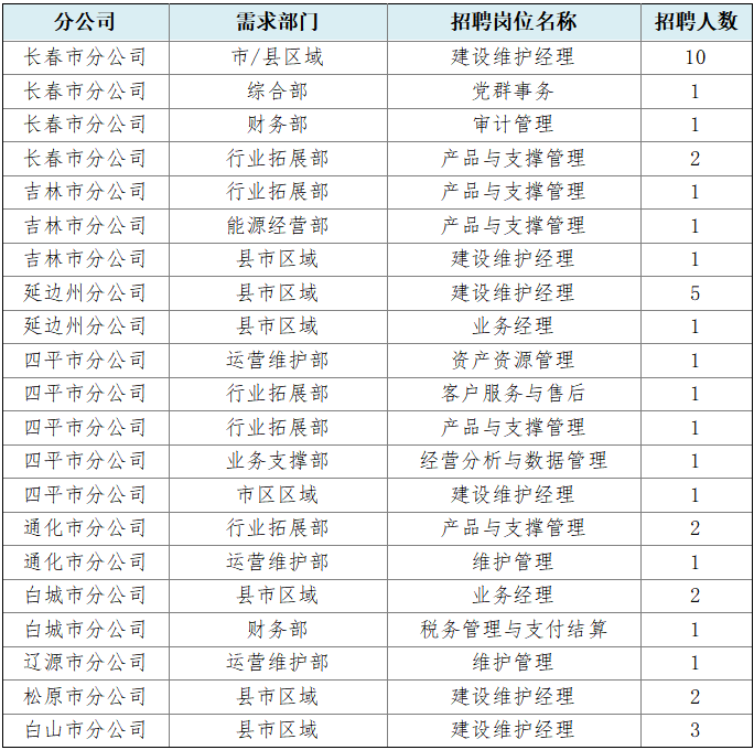 中国铁塔吉林省分公司2025年秋季校园招聘