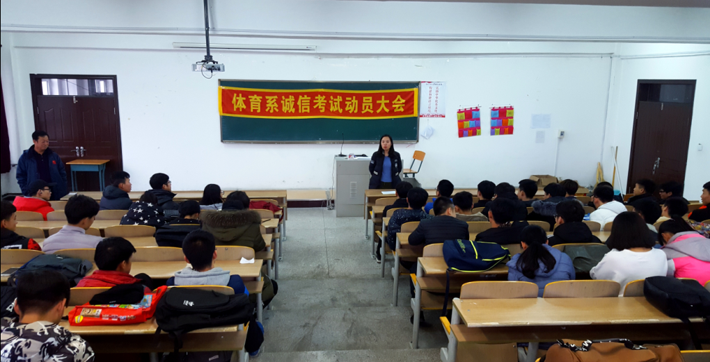为了进一步加强同学们的考风考纪,构建诚信校园,保证期末考试的顺利进行,倡导同学们“端正考风、严肃考纪、文明答题、诚信应考”。为此,体育系于2016年12月21日下午在博达学院第三教学楼3322教室召开“期末考试动员大会”。参见本次大会的有体育系主任邵连成、体育系辅导员尹茹以及2016级全体学生。