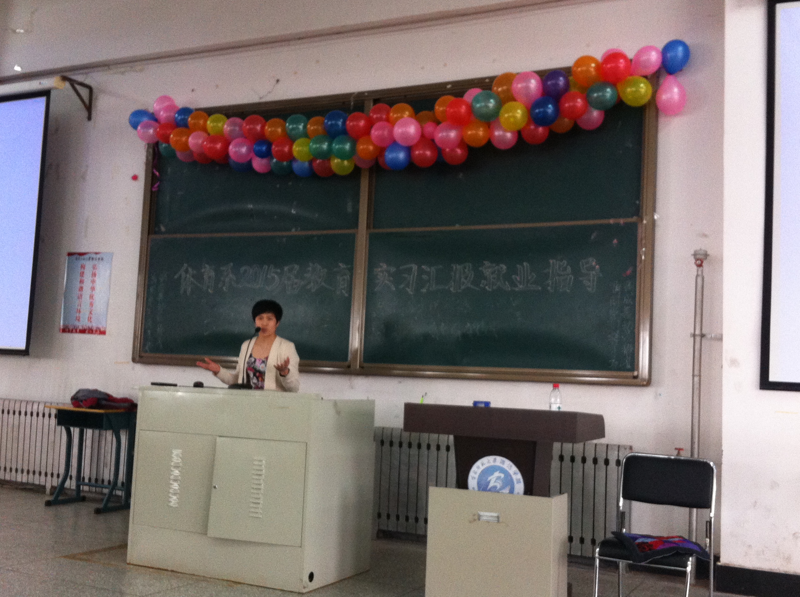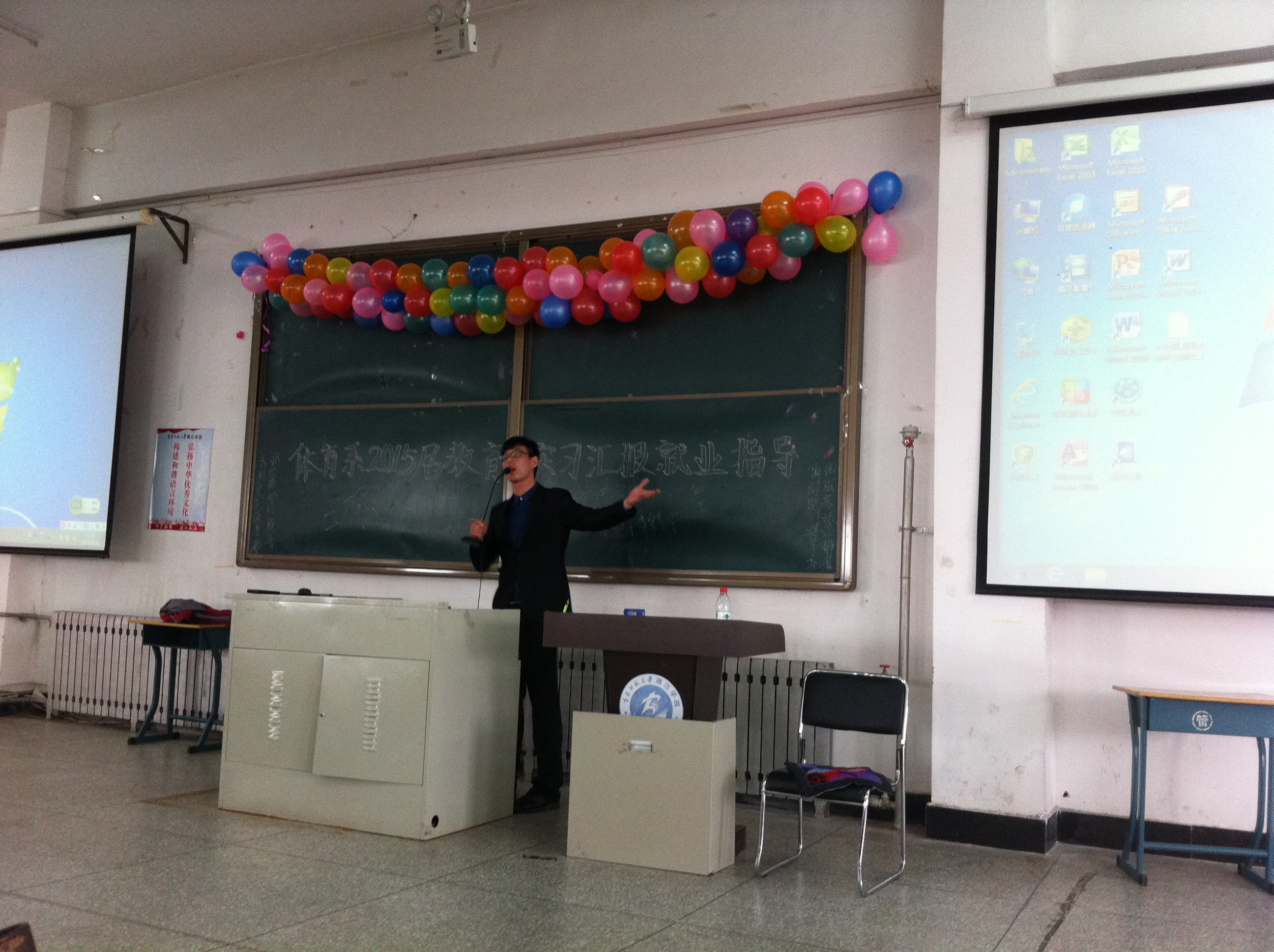 2013届体育教育专业毕业生刘冬梅、2015届体育教育专业毕业生祁晨、郭峰,结合自身学习、求职、工作经历进行了经验交流,用自己的切身经历为体育系全体学生做了一次生动的就业指导和经验交流报告。