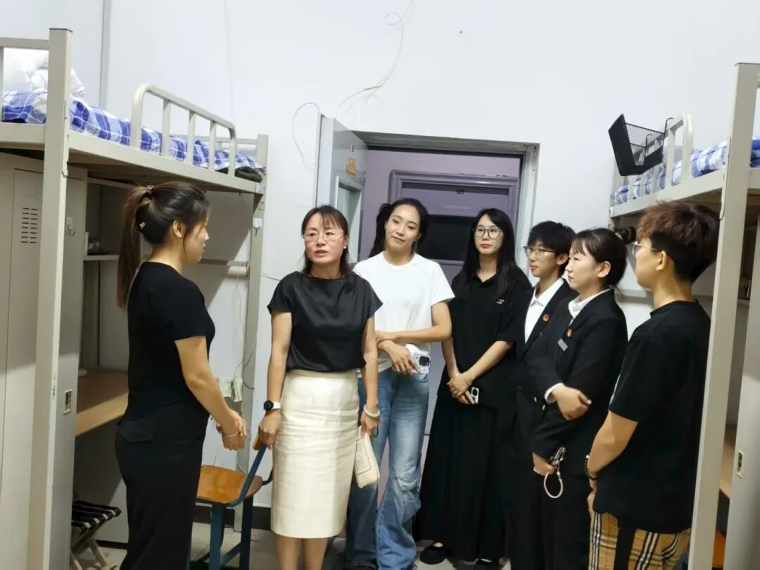 为确保军训工作顺利完成,来自全国各地的新生迅速融入大学校园生活进入军训状态,8月31日晚上7:30分,体育学院陈立春院长、田晓丽副院长、李重言副院长与辅导员柳杨老师、杨小依老师、贾荟平老师分别对男女生寝室进行了2025级新生宿舍查寝工作。