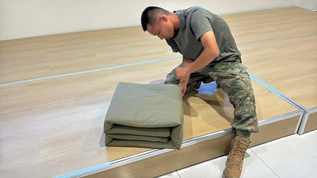教官严格依据军训内务标准,亲自示范指导,针对新生宿舍的被子叠放、物品归置及整体清洁等方面提出具体要求。在辅导员、教官与新生的协同努力下,内务整理工作成效显著。如今宿舍内务规范统一、焕然一新,整洁的床铺、有序的书桌与干净的环境,充分展现了新生良好的精神风貌,给全体参训人员留下深刻印象。