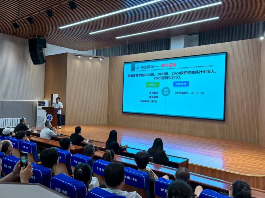 为助力新生家长深入了解学校及体育学院的工作全貌,清晰掌握孩子未来四年的学业规划、校园生活与就业前景,进一步强化家校合作,携手为学生的成长成才保驾护航。体育学院在8月31日上午于体育馆报告厅举行2025级新生家长见面会,陈立春院长、李重言副院长、柳杨老师、杨小依老师、贾荟平老师、邹立昌老师、25级学生和学生家长出席本次会议。