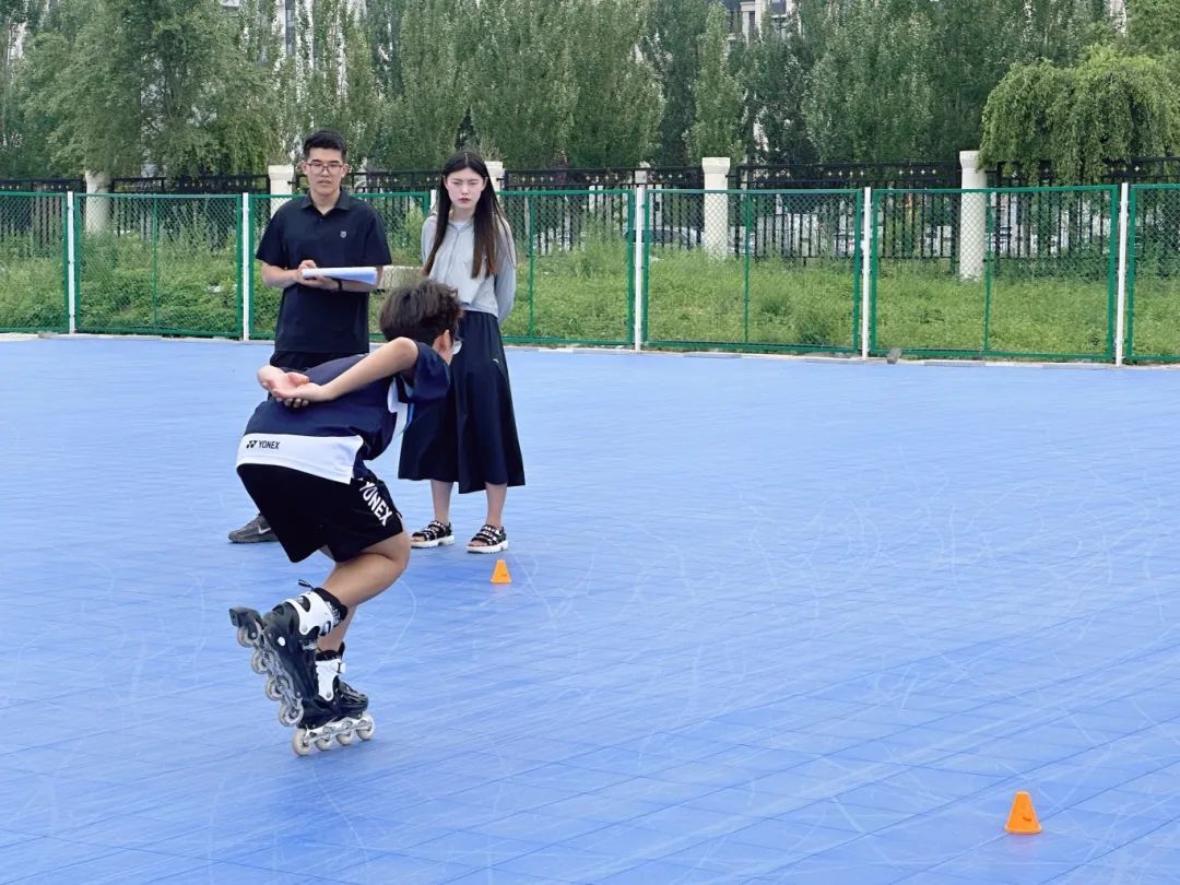 2025年6月18日下午2点,冰雪运动微专业期末考试在轮滑场准时进行。监考教师教务处苏泳心、李乐为,体育学院吕悦、周子辰。主要考核内容:轮滑项目单脚支撑技术评定以及单圈竞速滑行两项内容。