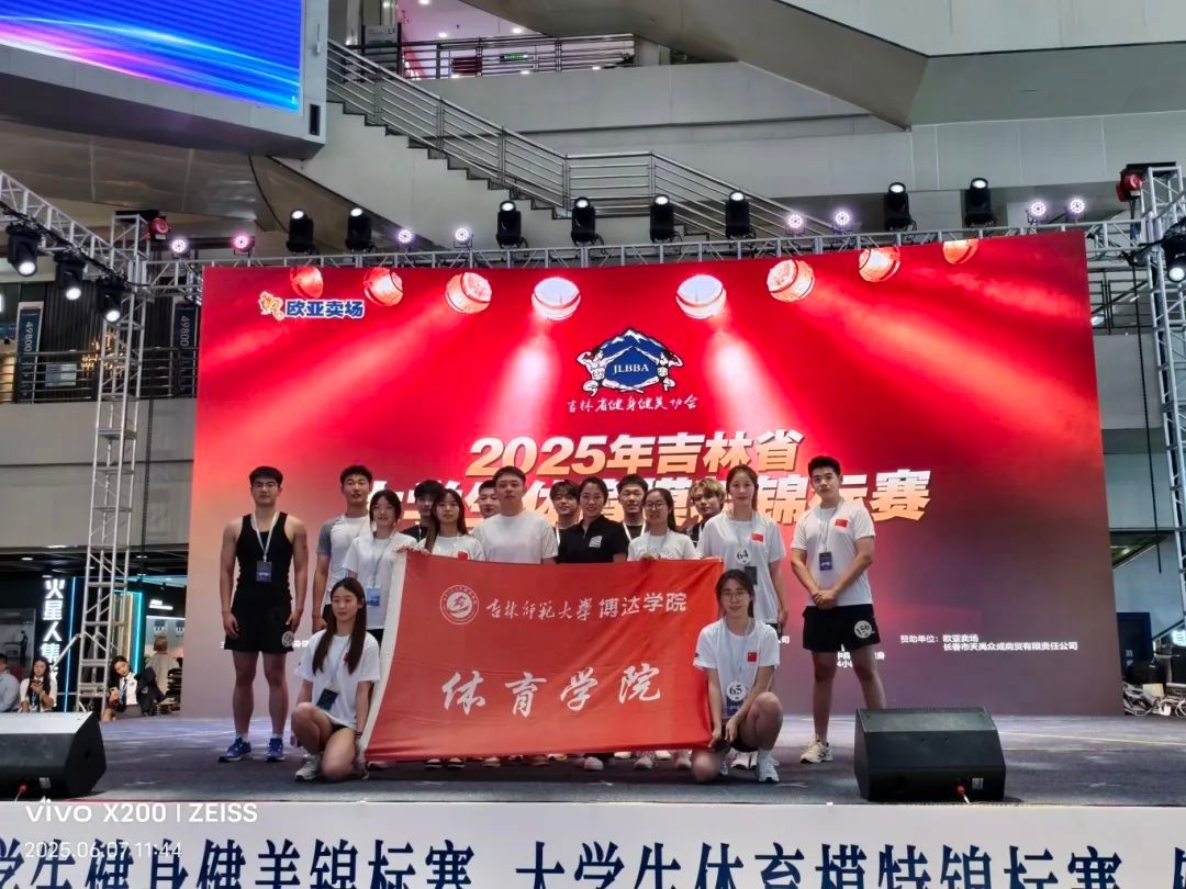 2025年6月7日,吉林省大学生体育模特锦标赛在吉林省长春市举行,本次大赛有来自全省的40所校参赛,共计400人次。体育学院副院长田晓丽、副院长李重言老师担任领队,在教练黄春月、 齐庞博老师的精心指导下,体育学院的14位选手,凭借扎实功底与出色发挥勇创佳绩,载誉而归,荣获团队第二名的好成绩。