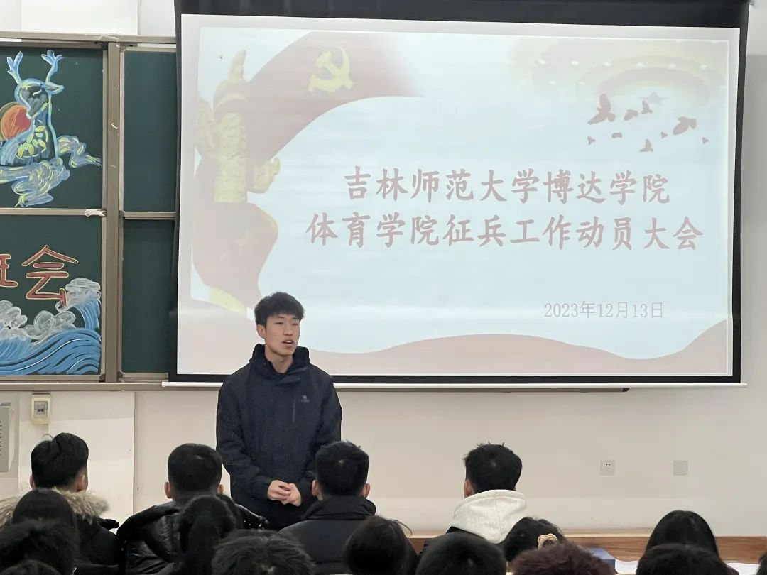 2023年12月13日,星空游戏中心入口体育学院征兵工作动员大会在综合楼星空彩票手机网址8召开,会议由学生会主席杨策主持,旨在鼓励学生积极参与征兵,为国家的安全和发展贡献力量。辅导员柳杨老师、夏师澄老师、王婧老师以及学院21级22级23级全体同学参会。