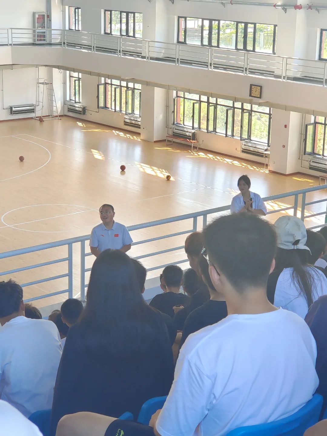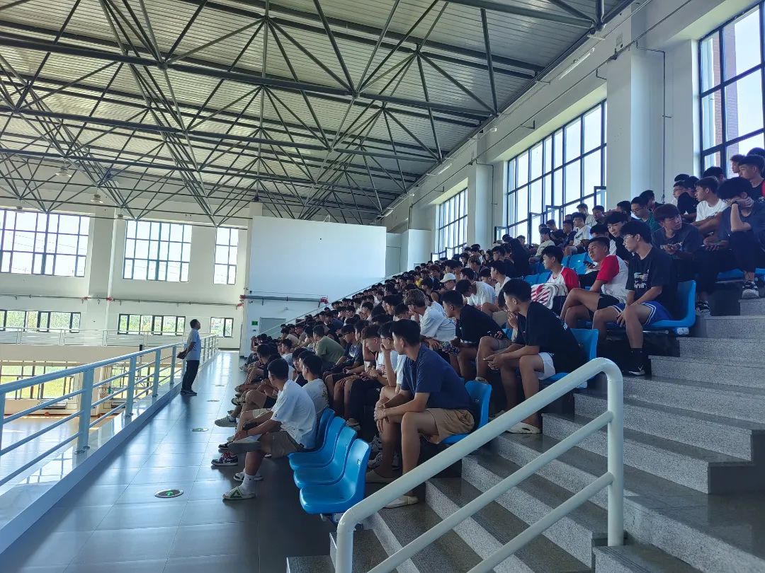 金色秋月,在凉风习习中,我院师生在体育馆看台展开了新学期期初大会,新学期、新起点、新气象,此次大会为同学们在新学期的学习工作做了简单规划。出席本次大会的有学生办主任杜振兴、辅导员夏师澄老师以及2021级和2022级全体学生