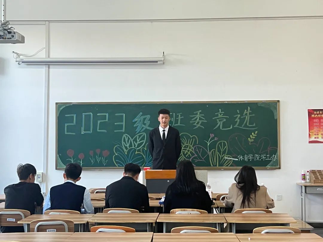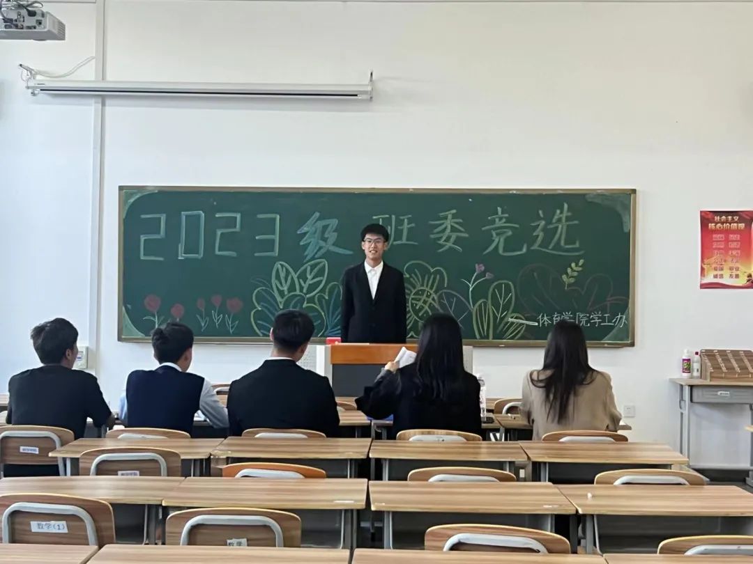 新学期新气象,体育学院学子积极适应新环境、新学期、新课程,为了加强班集体建设,2023年10月19日,我院于综合楼1113教室举行了2023级班委竞选大会,本次竞选评委有辅导员夏师澄老师以及2023级各班大班代。