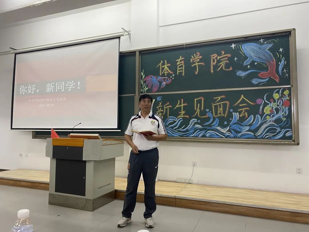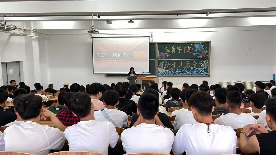 9月4日下午,我院在综合楼召开2023级师生见面会。参会人员有刘丹院长、袁吉副院长、辅导员王婧老师、辅导员夏师澄老师、办公室卢静老师、以及体育学院各专选老师和全体23级新生参加此次会议。
