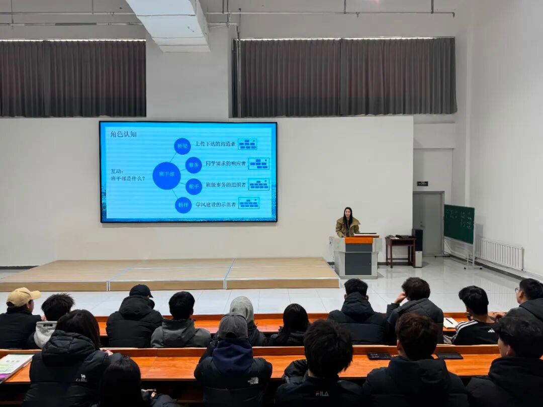 老师还阐释“服务为心、引领为术”的理念,呼吁班委从“要我做”转变为“我要做”,通过多元方式倾听同学需求,以自身行动带动集体。最后,她以“功成不必在我,功成必定有我”寄语班委,鼓励大家在服务中实现自我成长。