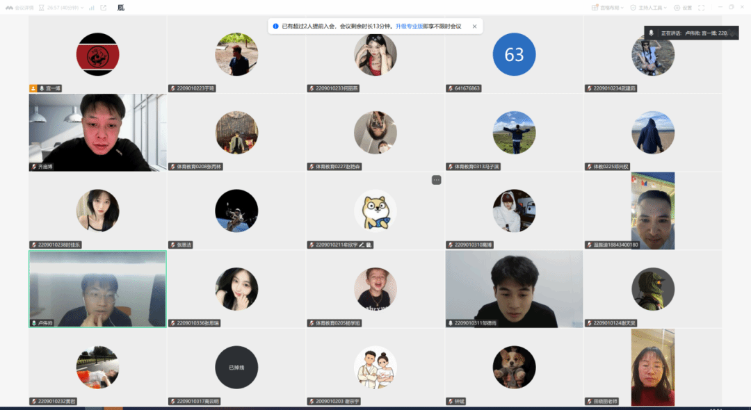 12月26日晚6点,体育学院2026届毕业论文开题答辩会以线上形式顺利举行。本次答辩会共有118名毕业生参与,16名教师担任答辩评审,答辩工作分为三组同步开展,各组由组长主持推进。