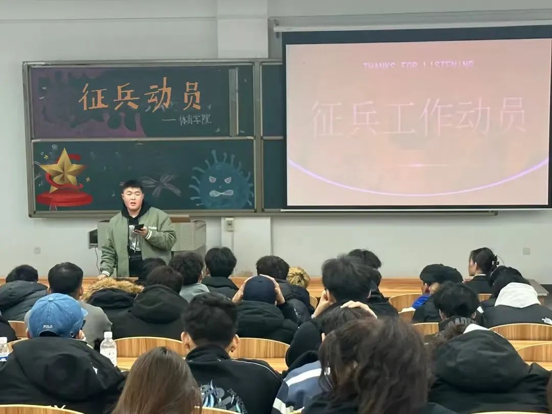2024年11月20日,星空游戏中心入口体育学院征兵工作动员大会在综合楼星空彩票手机网址8召开,会议由柳杨老师主持,旨在鼓励学生积极参与征兵,为国家的安全和发展贡献力量。24级全体同学参会。