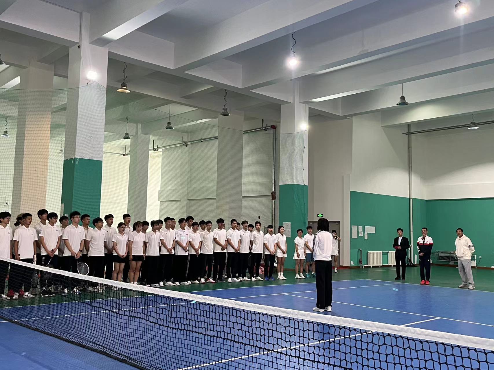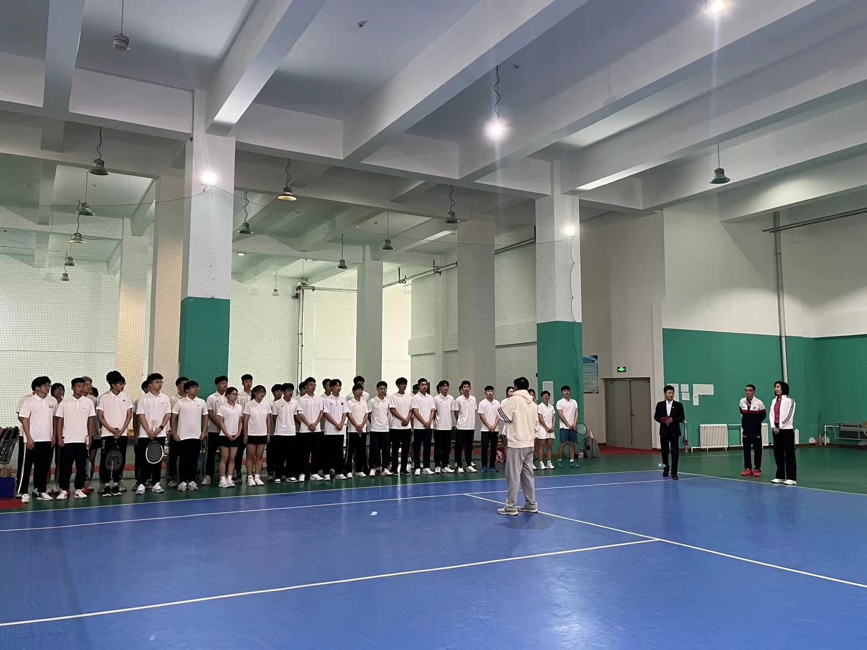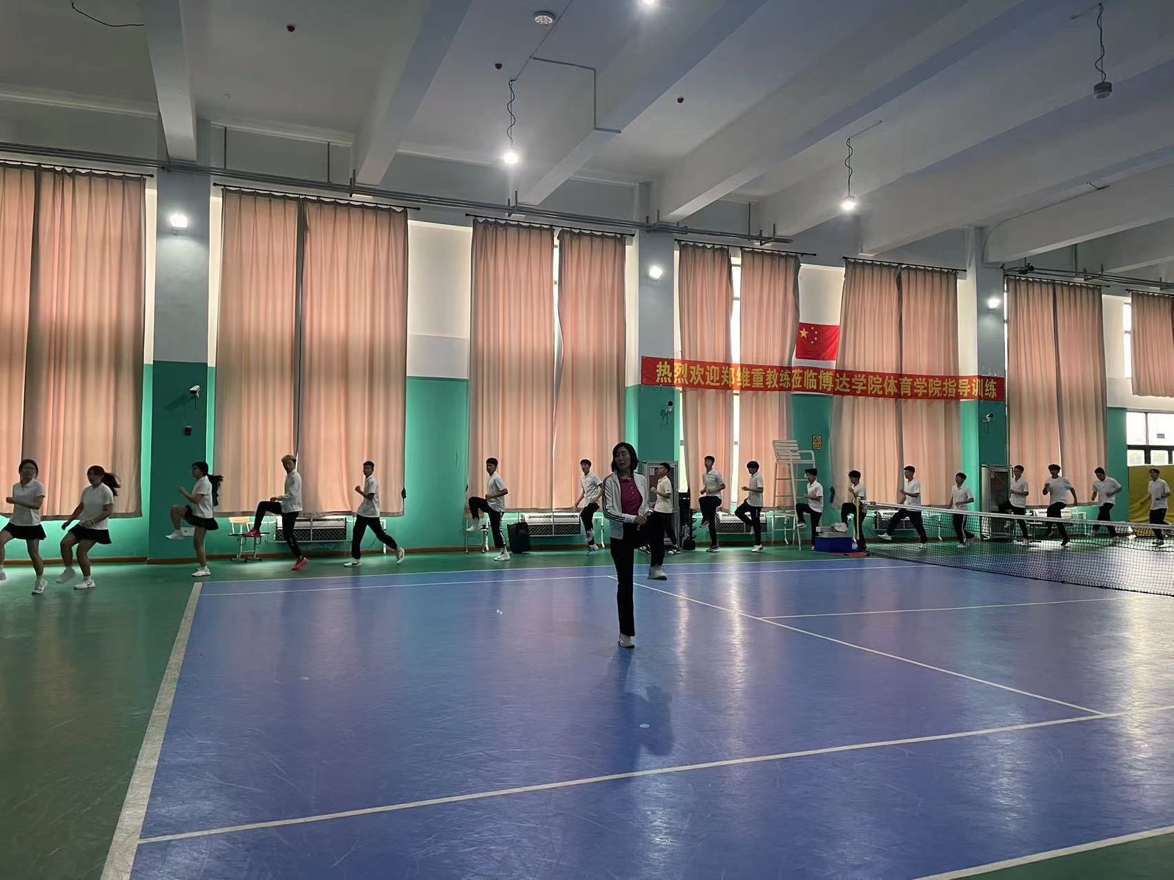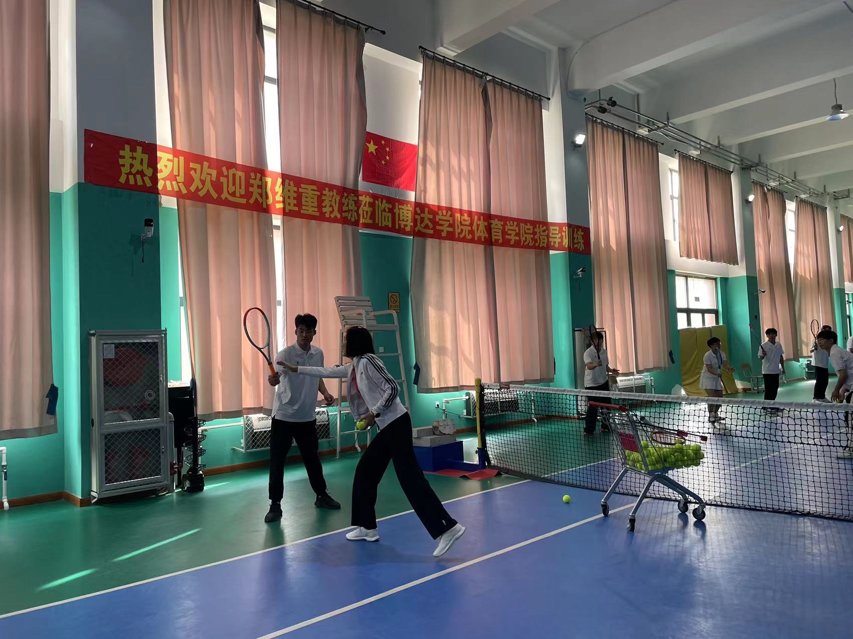 刘丹院长向同学们介绍了郑维重教练,她曾经是北京队的队员,职业网球运动员。郑维重教练培养了众多网球运动员,有着丰富的教学和实践经验,刘丹院长希望同学们可以珍惜此次机会向郑维重教练学习。