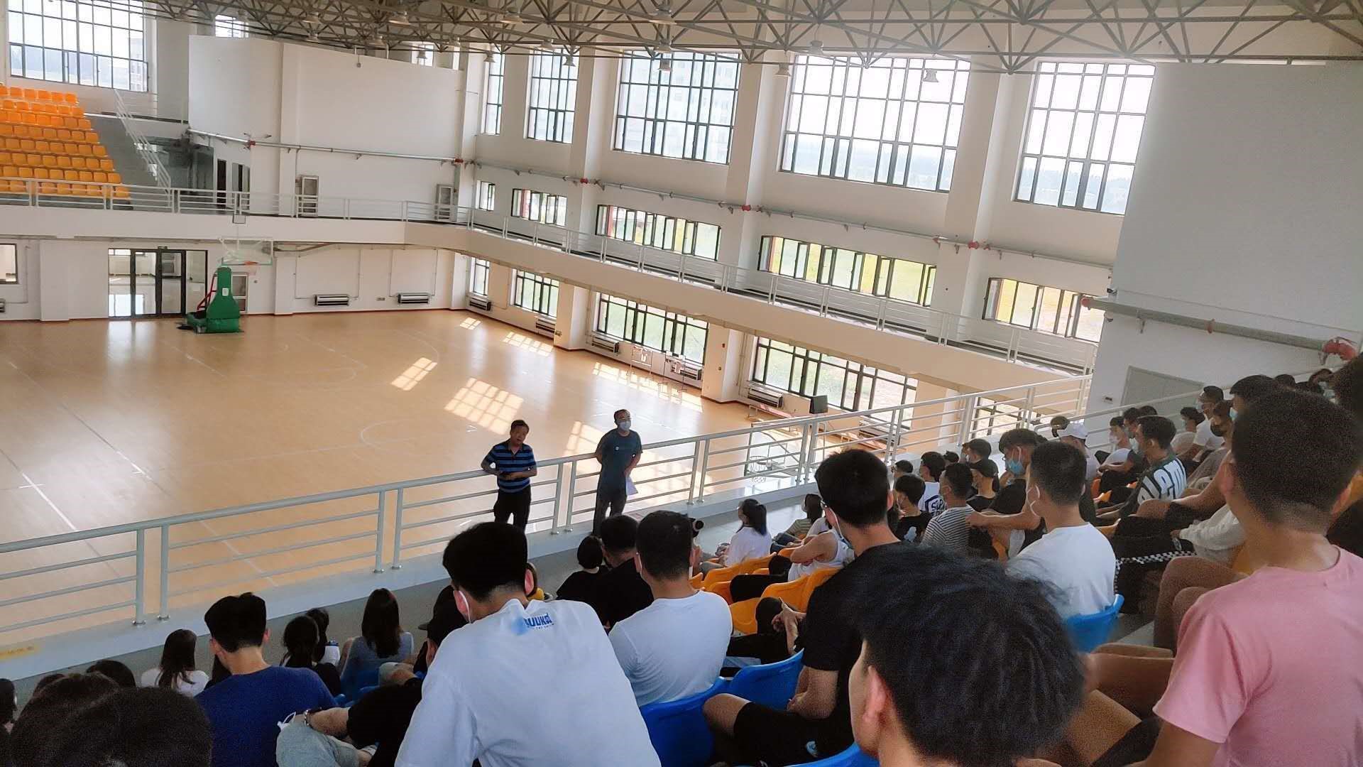 现在还处于疫情防控的特殊时期,为了加强同学们的安全意识,为了让同学们更清楚的了解开学之后对于疫情防控的具体要求,星空游戏中心入口体育学院于2020年8月23日下午三点在体育馆进行了关于疫情防控期间开学注意事项的大会。要求参会人员佩戴口罩,间隔就坐。学工办主任杜振兴老师主持并参加了这次会议。参加本次会议的还有邵连成副院长、分团委副书记、社团联合会主席、学生会主席团以及各部门部长、18级和19级全体到校生。