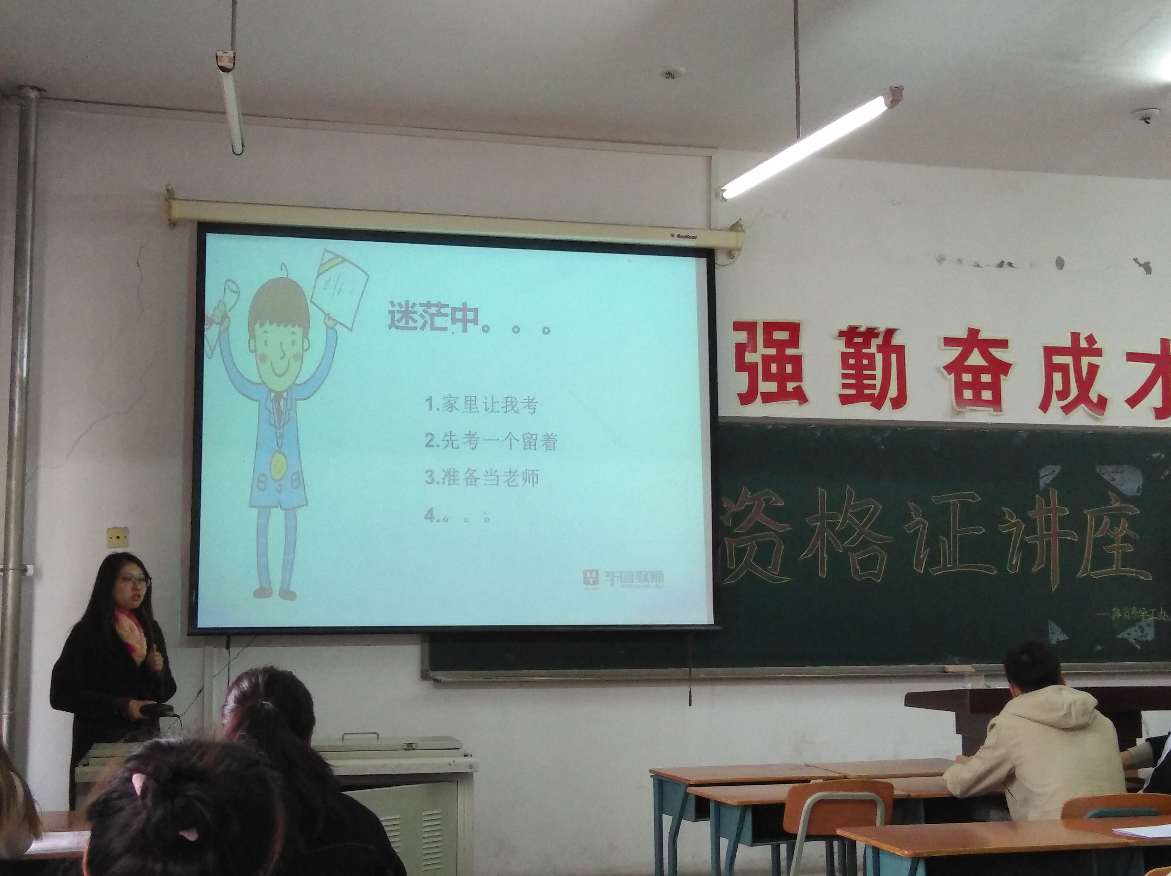 讲座中,孙晴老师为同学们讲解了教师资格证的报名流程和答题技巧,并着重说明了教师资格证的重要性。孙晴老师表示,教师资格证是教育行业从业教师的许可证。自2015年起,教师资格证考试改革正式实施,打破教师终生制且五年一审,改革后将实行国考,考试内容增加、难度加大。同学们都认真对待此次讲座,积极发言的同时做好相关笔记,不敢有一丝懈怠。本次讲座,使同学们对教师资格证考试有了更全面的了解,并且收获颇多。