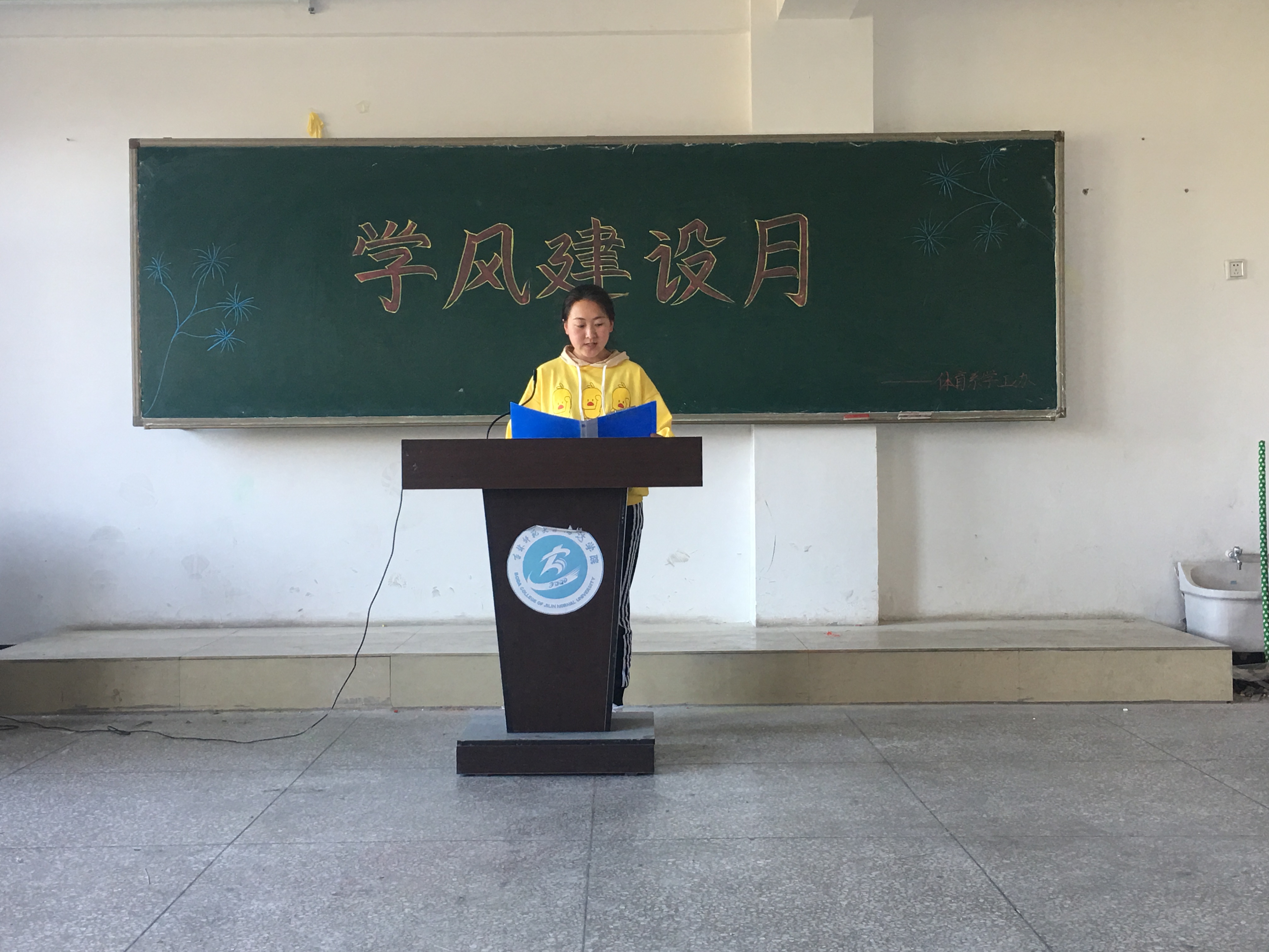 学风是学生思想道德品质、学习精神与综合素质的重要体现,是对学生成长的基础和加强学风建设的养成必不可分。为了进一步加强学风建设,营造良好的育人氛围,人才培养质量,开展本次活动,加强体育系的学习能力。接下来学委代表上台发言,让大家明白了出勤和学习的重要性。