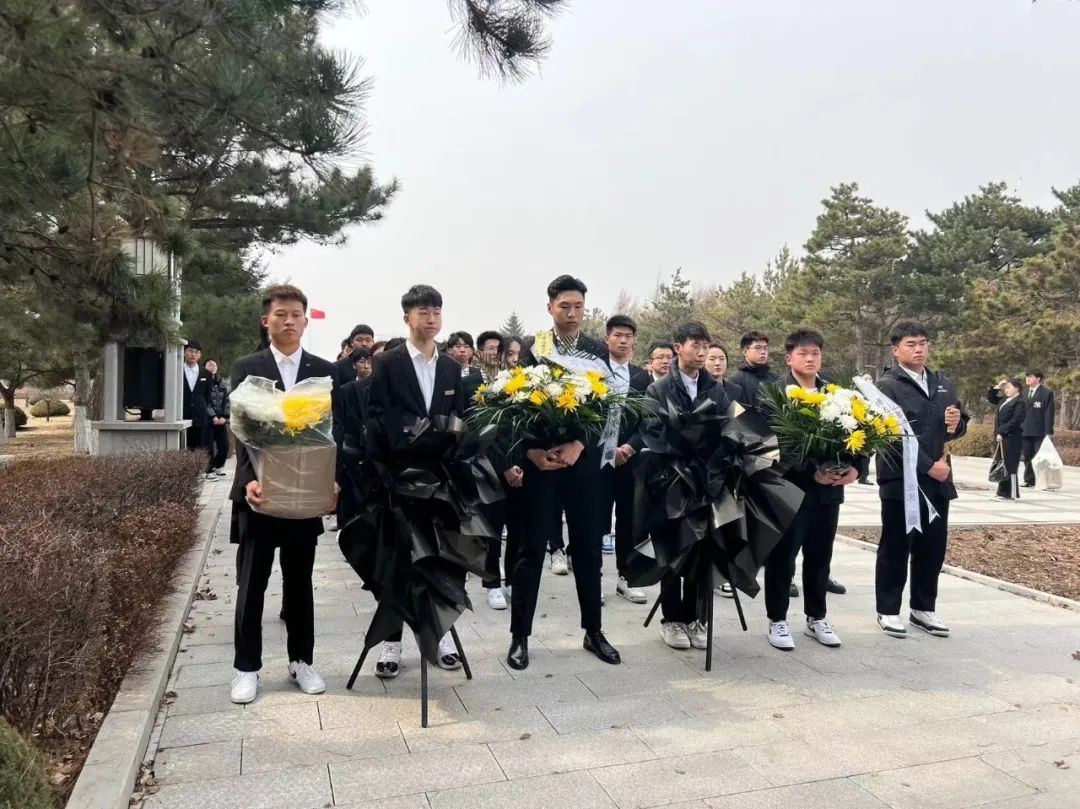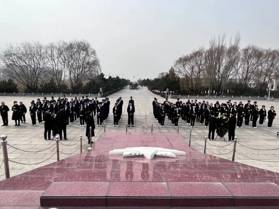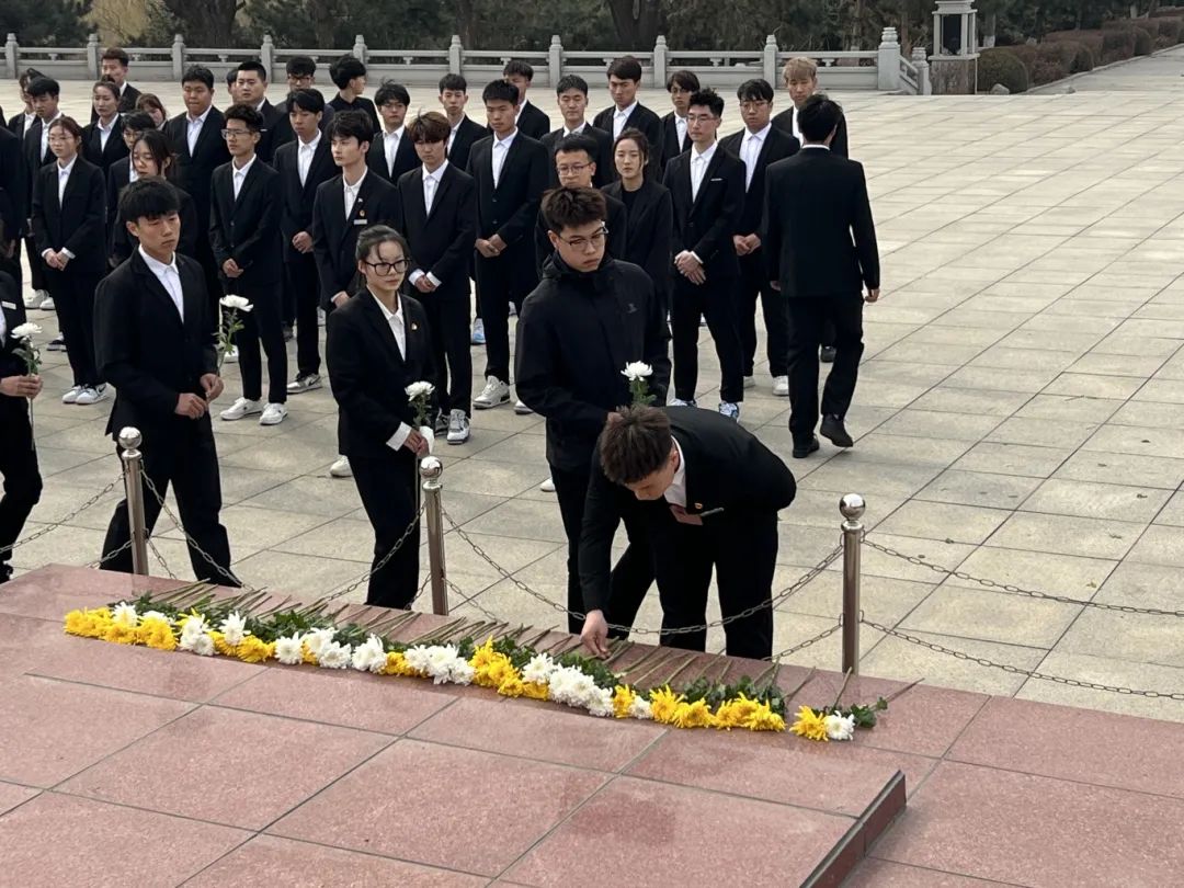 随后来到了烈士纪念碑前,在庄严的革命烈士纪念碑前,同学们向承载着10112个烈士的纪念碑献上花篮并悉心整理绶带,以表达对英烈的追思之情。全体师生集体默哀,和煦的阳光、温暖的春风和芬芳的鲜花寄托了同学们对先烈的无尽哀思。