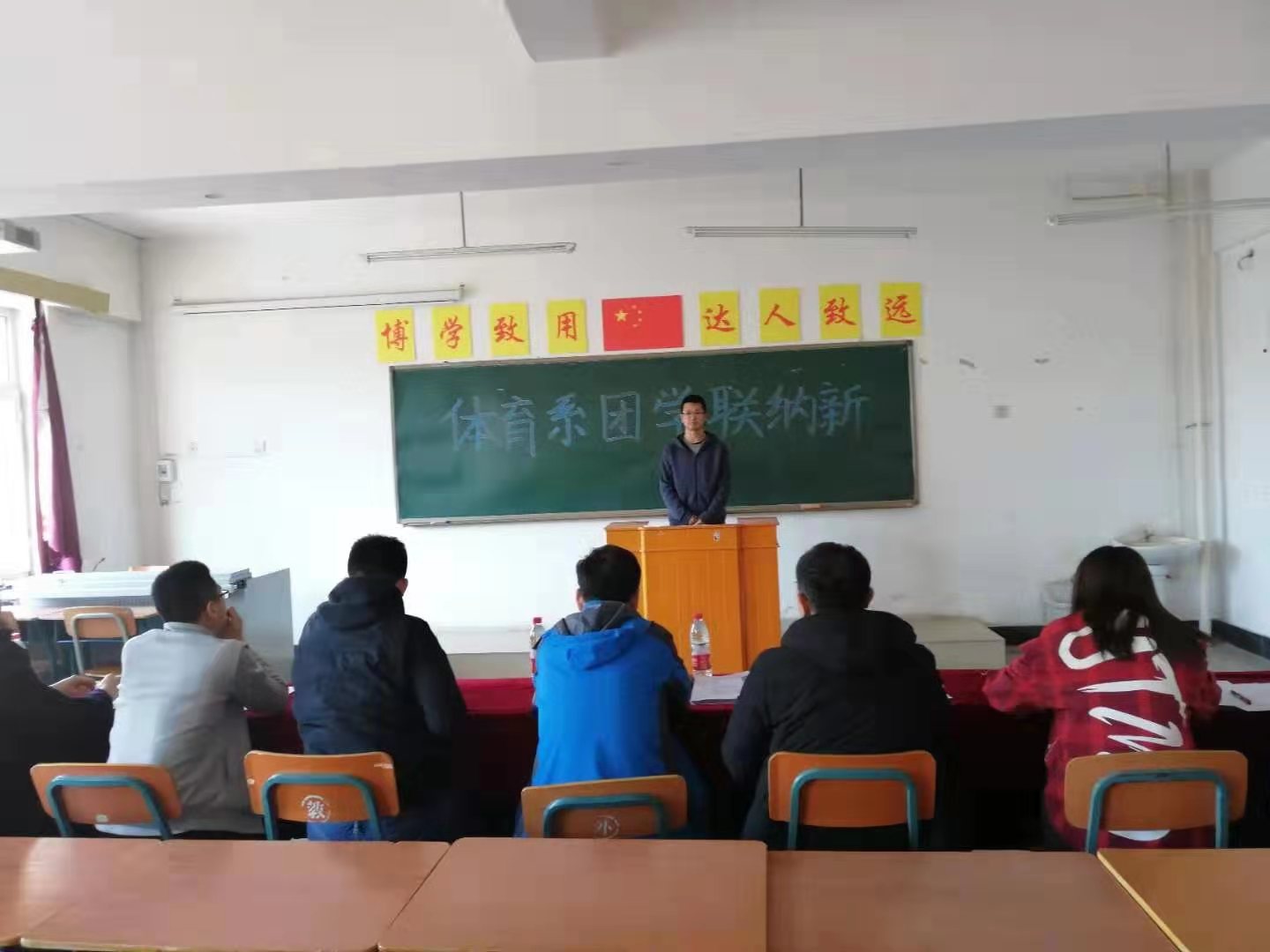 星空游戏中心入口体育系于2019年3月18日下午3点30分在1328教室举行团学联纳新活动。出席本次纳新活动的有体育系主任邵连成老师,体育系学工办负责人杜振兴老师,体育系学生会主席团及各部门部长。