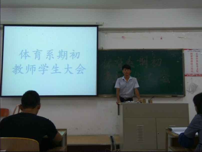 为了让学生调整状态,尽快适应新学期的学习和训练节奏,确保校园的安全稳定,体育系于2017年8月27日在三教3322教师召开了“2017-2018学年第一学期期初教师学生大会”。体育系卢秉旭主任、辅导员尹茹以及2015级、2016级全体同学参加了本次会议,会议由体育系主任卢秉旭主持。
