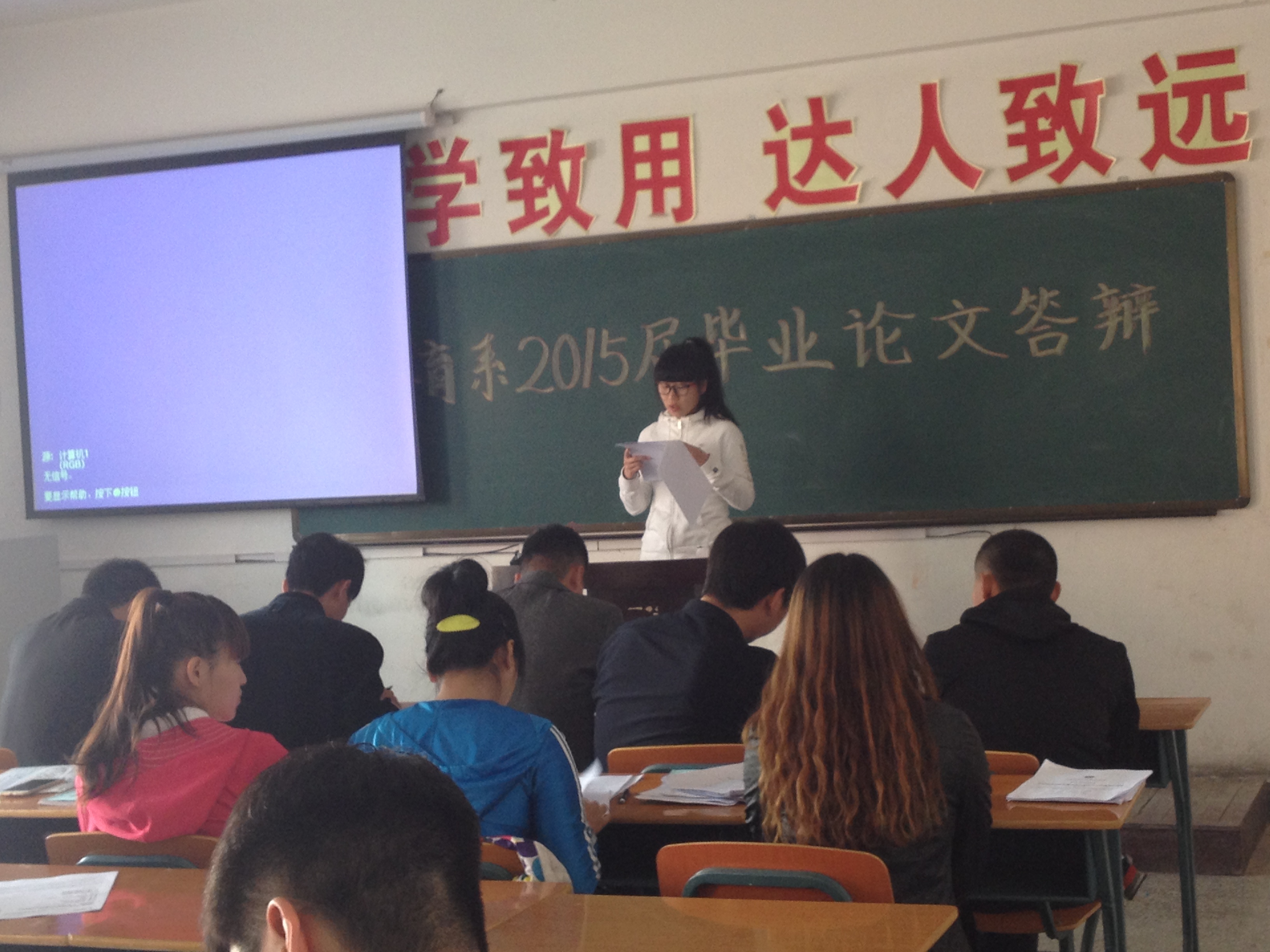 根据体育系2015届毕业论文工作安排,我系于2015年4月18日上午8点在2317教室开展了2015届毕业生毕业论文答辩工作。