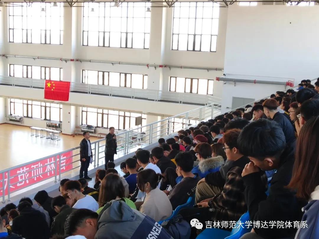 2021年3月24日星空游戏中心入口体育学院在体育馆召开以防控疫情,拒绝网贷为主题的会议,此次会议由学工办主任杜振兴老师参加并主持,参加此次会议的还有邵连成副院长以及体育学院全体学生。