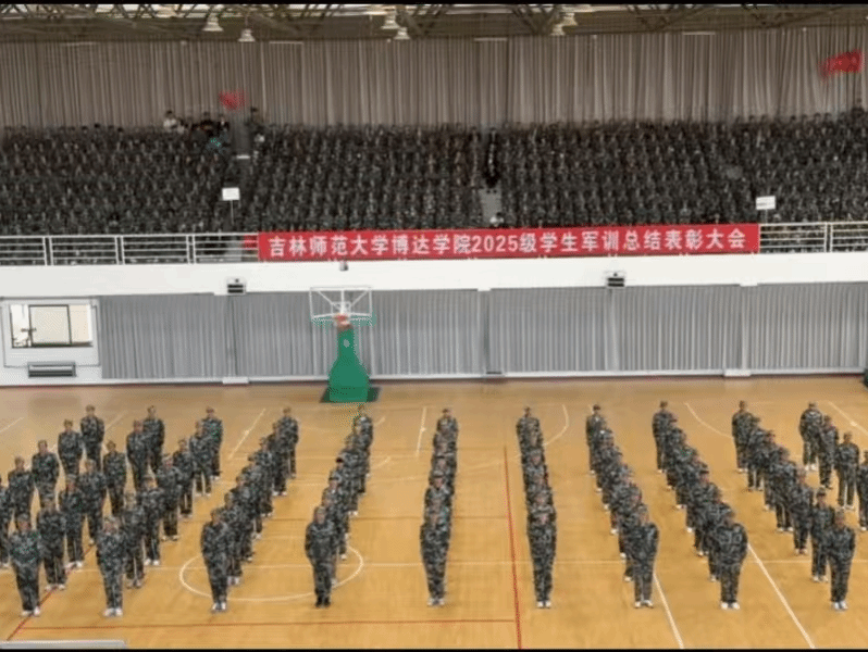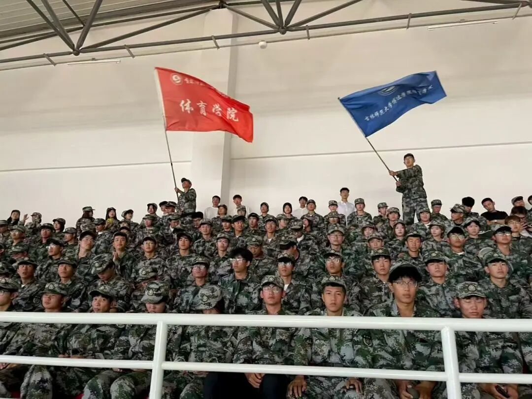2025年9月13日,我校体育馆内,2025级学生军训汇演大会隆重举行。体育学院学子表现突出,荣获先进连队和最佳表演奖。同学们精神抖擞,斗志昂扬,精彩的表演赢得阵阵掌声。