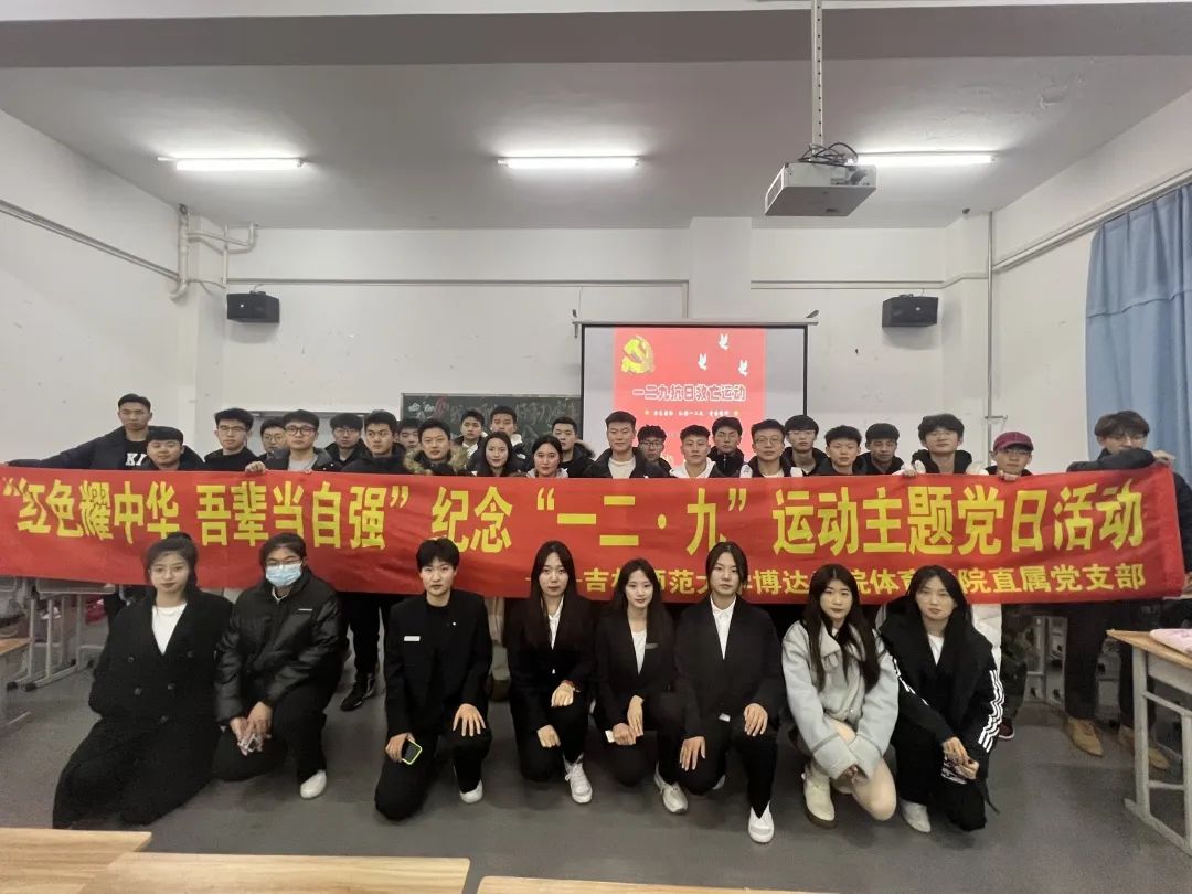 为纪念“一二·九”运动,传承爱国主义精神,2023年12月6日吉林师大学博达学院体育学院直属党支部在综合楼星空彩票手机网址1举办了以“红色耀中华,吾辈当自强”为主题的党日活动。参加本次活动的人员有:党支部书记夏师澄老师、党支部预备党员和积极分子。