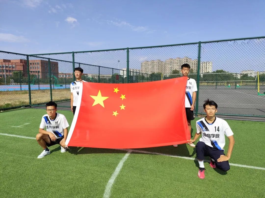 暖风习习,旗面迎风招展。全体运动员有序进入赛场,精神抖擞,朝气蓬勃,彰显青春风貌,点缀着这片绿茵。