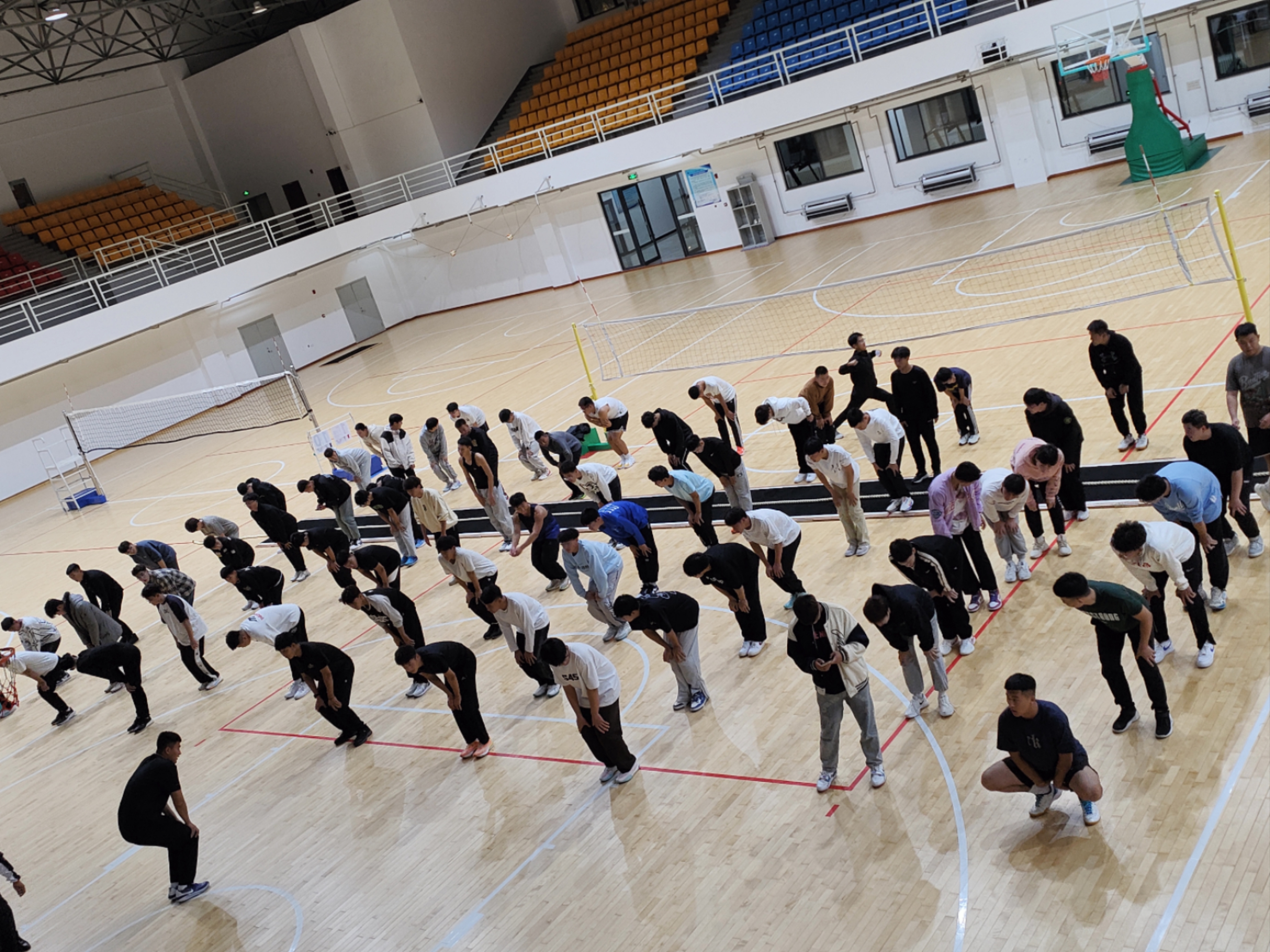 比赛开始前,先由23级3班杨佳明同学带领大家进行热身活动。