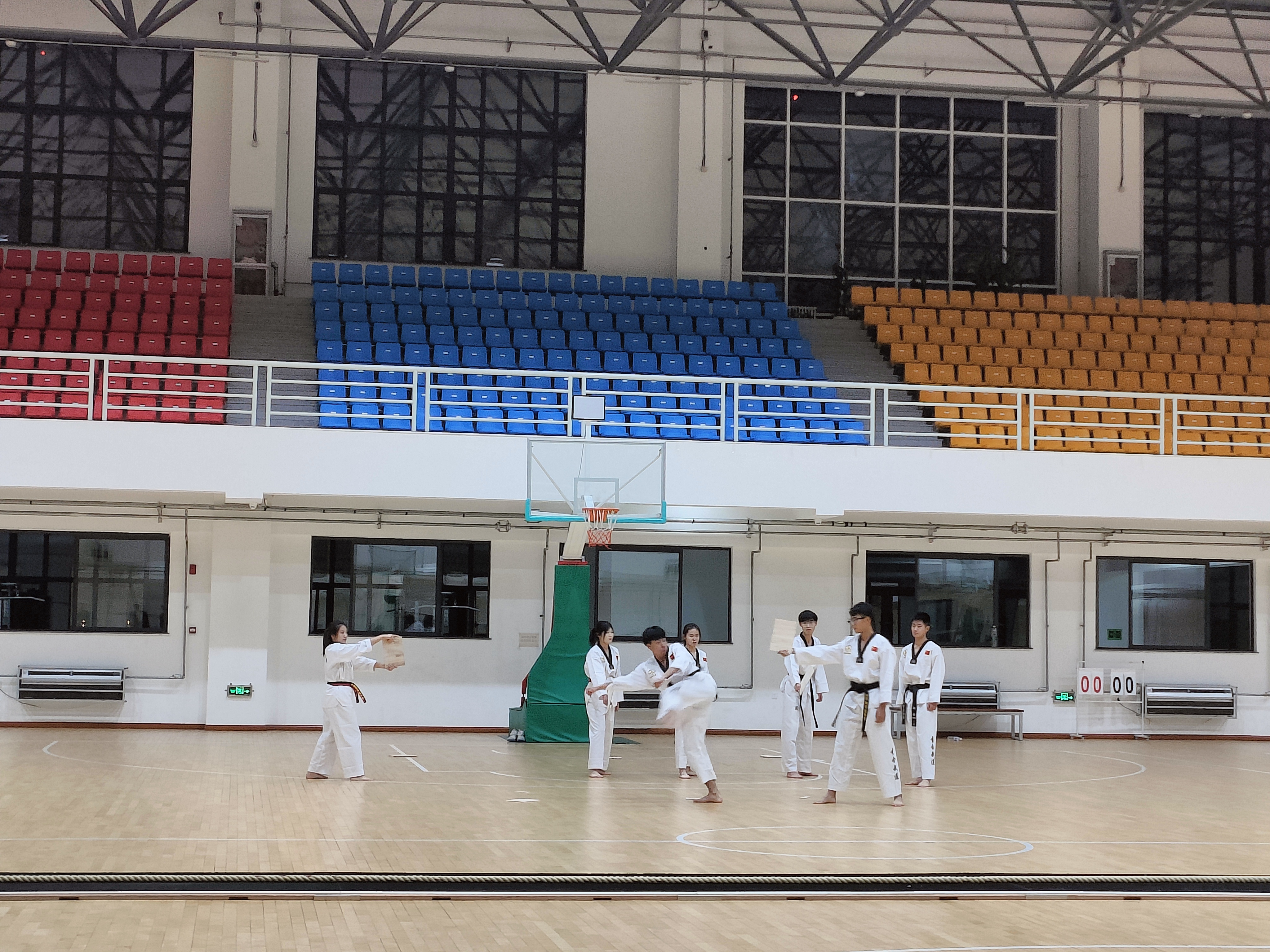 紧接着,由邹立昌老师担任领队的跆拳道队带来开幕式演出。在刚刚结束的2023年吉林省学生跆拳道锦标赛中,我院取得了五金三银的优异成绩,被大会评为“优秀组织奖”。他们用潇洒的武姿和精准的动作,向世人展现了跆拳道这项运动的独特魅力。