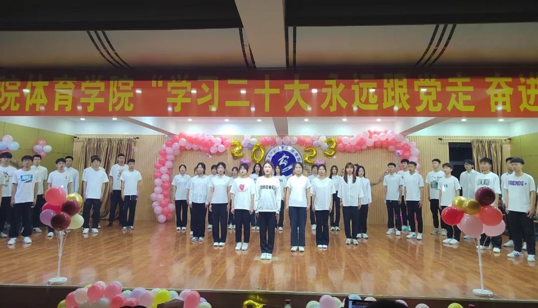 为深入学习贯彻落实党的二十大精神,进一步引导和激励同学们坚定中国特色社会主义理想信念,发扬五四精神和艰苦奋斗的传统,培育和践行社会主义核心价值观,2023年4月24日晚六点,体育学院在老校区第二教学楼六楼报告厅开展 “学习二十大 永远跟党走 奋进新征程”主题团日活动。