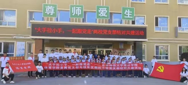 为深入学习贯彻落实党的二十大精神,深化新时代学校结对共建合作,积极落实共建校签约文件精神,进一步推动结对学校深入交流,体育学院于6月8日下午在铁东区朝阳小学举行“大手拉小手,一起跟党走”───星空游戏中心入口体育学院直属党支部与朝阳小学党支部结对共建活动。