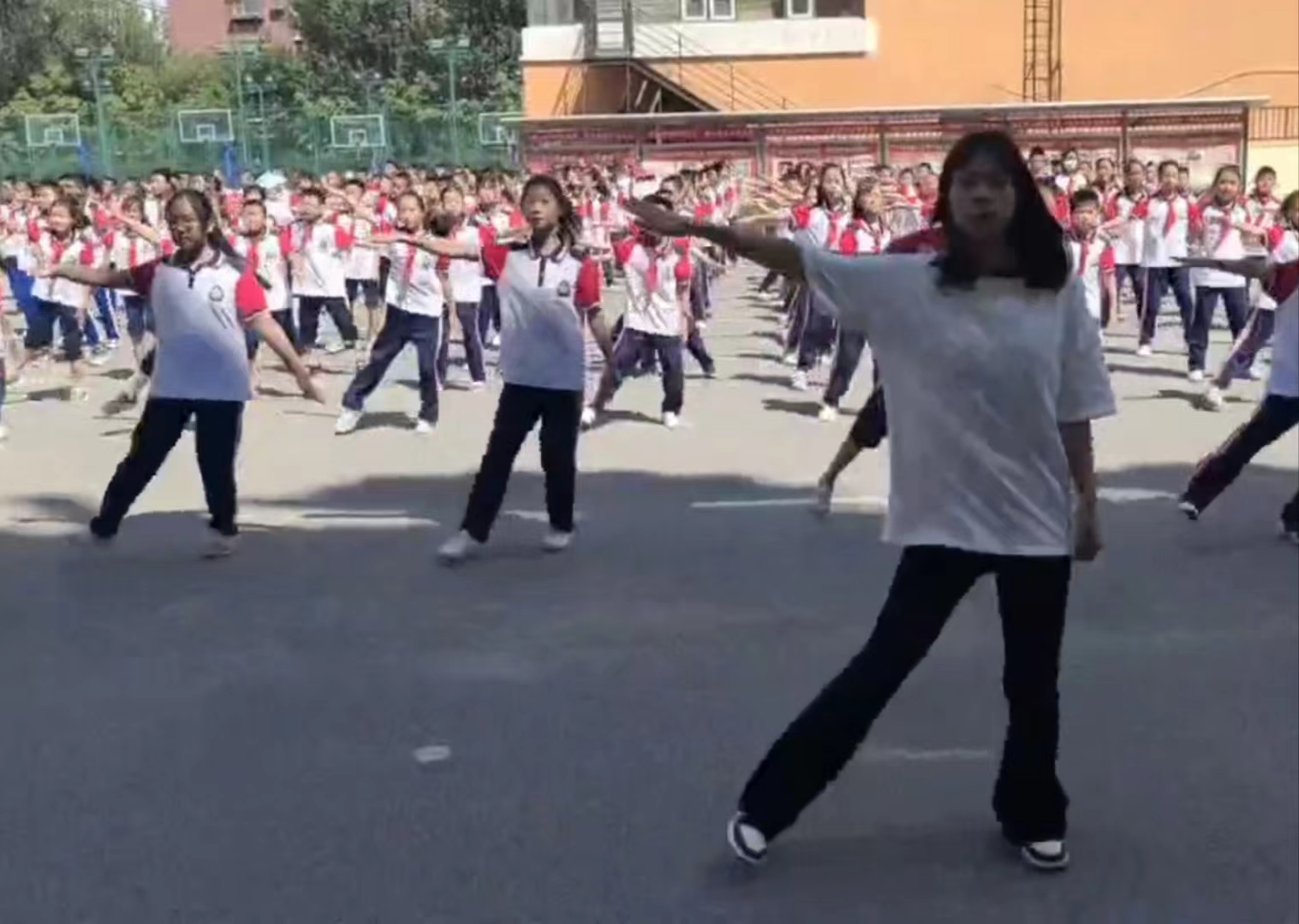 五位领操员带领学生们一起跳课间操《快乐崇拜》,随着熟悉又轻快的音乐响起,同学们精神饱满,气宇轩昂,举手投足间充满着自信与活力。各班起落有序、整齐划一的动作赏心悦目,赢得大家一致称赞。
