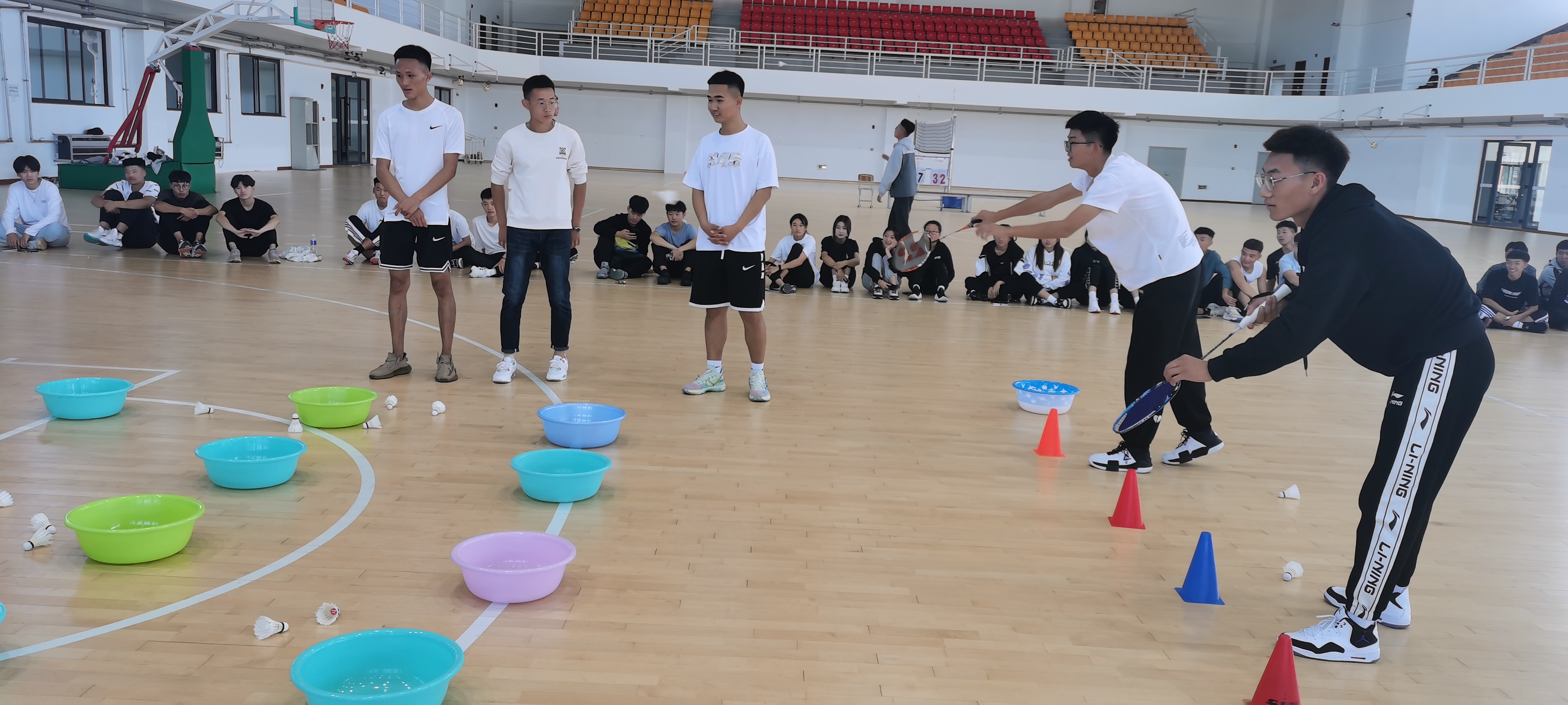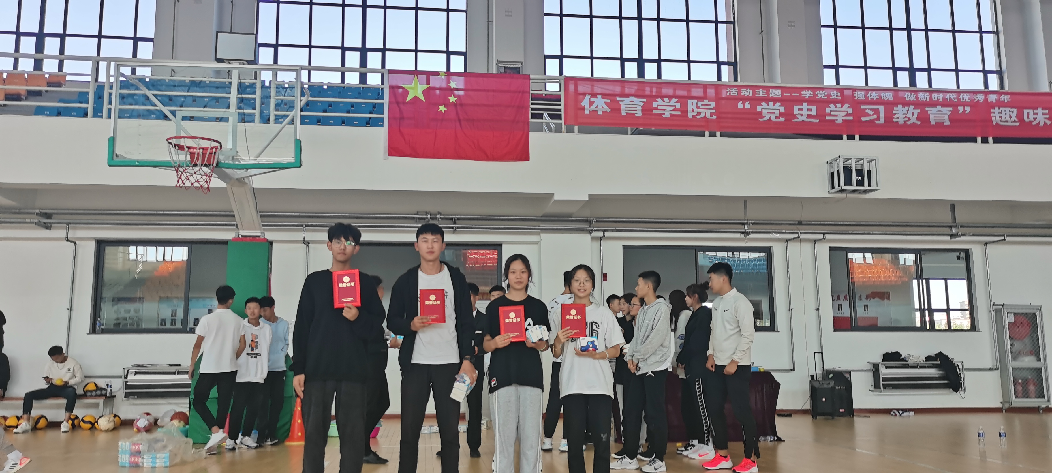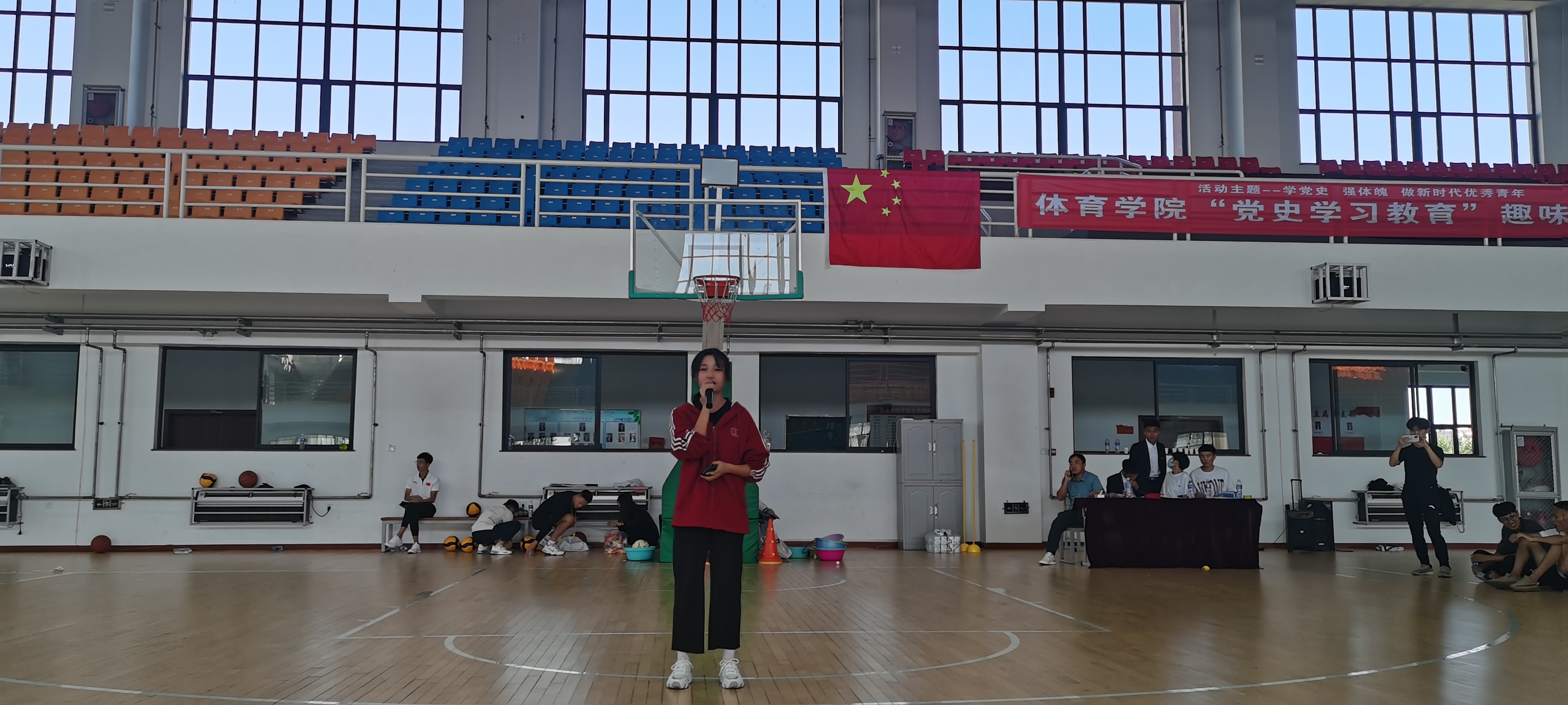 今年是中国共产党成立100周年,为了激励2021级新生知党爱党,倡导健康的校园文化生活,培养运动兴趣,树立正确的体育价值观念,建立和谐的学习环境,体育学院于9月18日体育馆篮球场举办了“党史学习教育”趣味运动会。参加此次运动会的人员有杜振兴老师、部分学生干部以及2021级新生。
