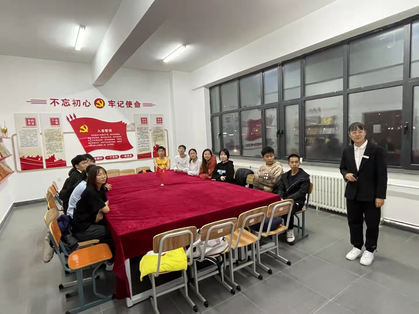 2021年10月27日,体育学院为响应中共中央印发的《关于在全党开展党史学习教育的通知》,在党员活动室开展了“永远跟党走”主题党课。主讲人组织部陈可欣,由部分团学联成员参加并学习。