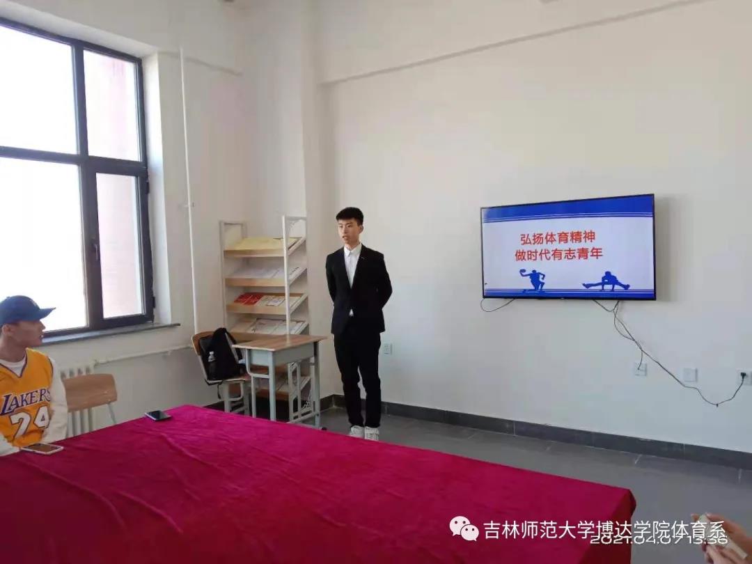 体育精神无关国界、跨越种族,一直激励着人类不断战胜自我、挑战极限。今天,我们比以往任何时候都更需要弘扬体育精神、发扬顽强拼搏的精神、振奋中国力量,从而为实现中华民族伟大复兴中国梦提供源源不断的强大精神动力。为提升广大学生的修养与综合素质,引导他们争做符合时代先锋的新青年,立志在构建和谐校园中展现青春,贡献才智。我院于2021年4月7日在体育馆党员活动室举行以“弘扬体育精神,凝聚爱国力量”为主题的演讲比赛。比赛请到的评委有学工办主任杜振兴老师、辅导员王婧老师以及学生会主席团。