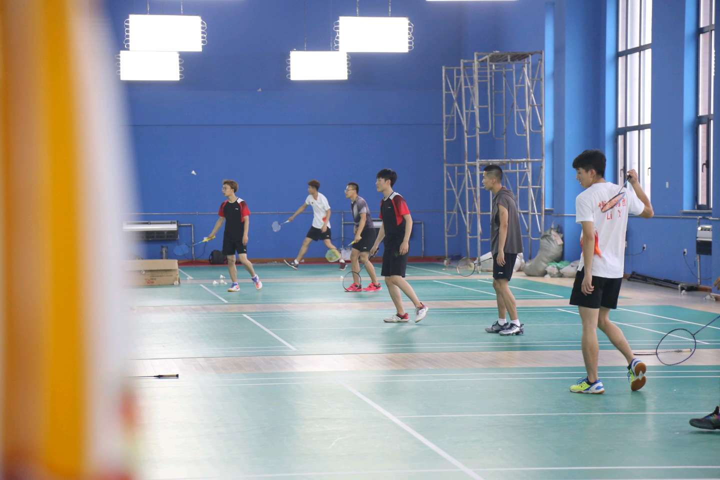 羽毛球专选同样是一个团结的队伍。为了送别16级学长,羽毛球专选也举办了羽毛球循环赛。比赛还没有开始,选手们都在做赛前的热身。每个人都信心十足等待比赛的开始。
