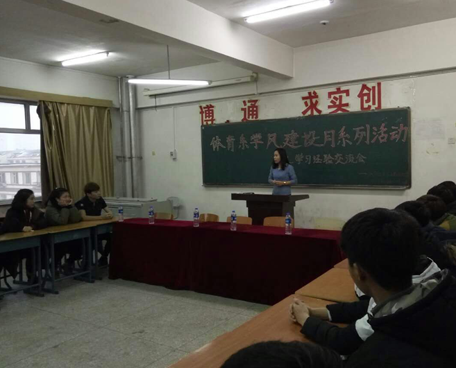 为让我系2016级新同学迅速的适应大学生活,找到适合自己的学习方法,合理的利用课余时间,正确处理学习、工作、生活三者之间的关系,充实度过美好的大学生活。我系于 2016年11月30日下午,在博达学院第一教学楼1417举办了学习经验交流会,出席本次交流会的老师有体育系学工办尹茹老师,学生代表和大一全体学生。