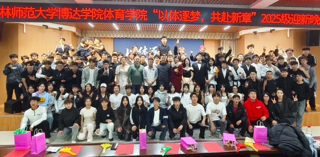 随着晚会落幕,在场老师与所有参演同学共同合影留念,为本次活动画上圆满句号。此次迎新晚会不仅为体育学院学子提供了展示自我的舞台,更以热烈温馨的氛围让新生感受到学院的关怀与热情,助力他们快速适应大学生活、增进友谊,相信2025级新学子将在体育学院这片沃土上,以青春为笔,书写属于自己的精彩篇章。