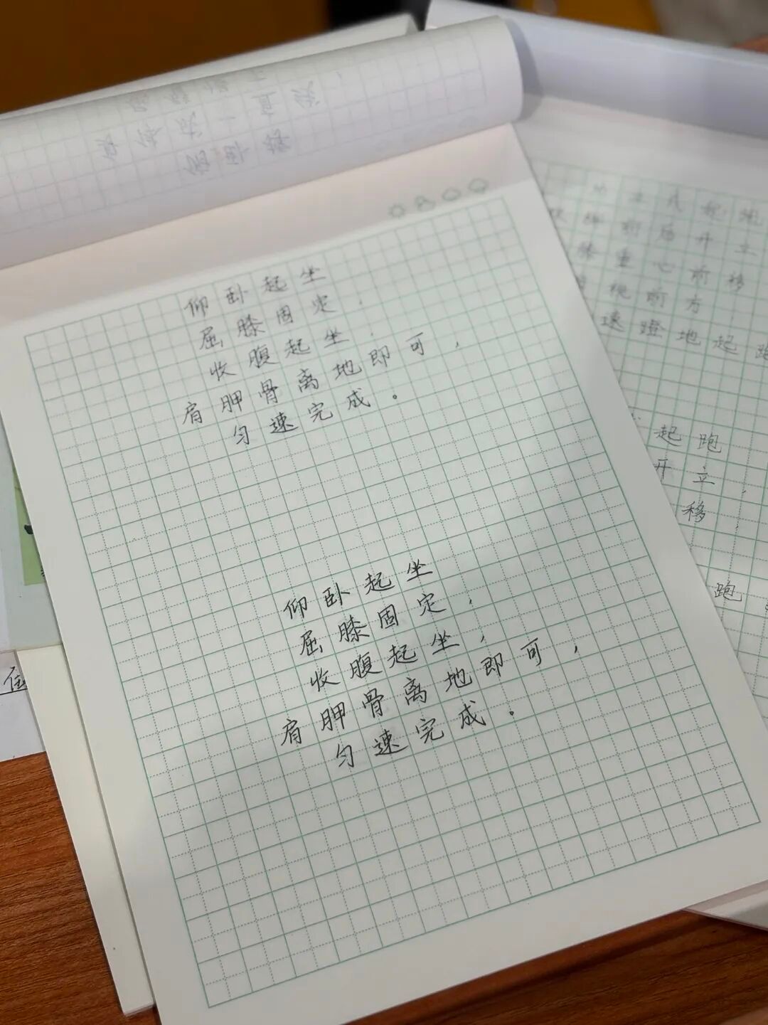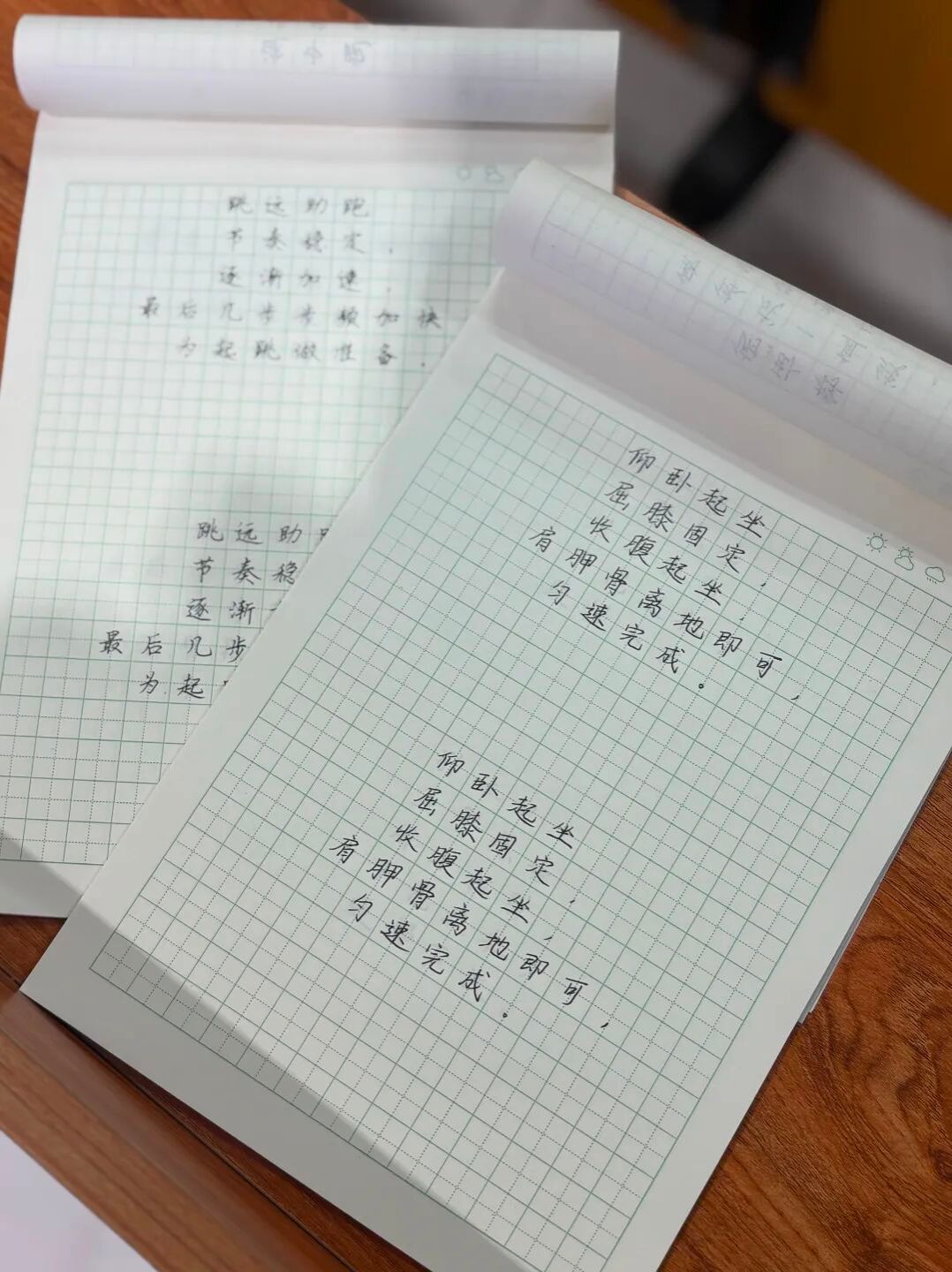日常训练之余,当别人休息时间被游戏占据,我们却在在书桌前与黑白墨水为伴。一笔一划,皆是苦练。钢笔字,结构舒展,力透纸背,既有体育人的刚劲有力,又不失书法的行云流水。每一次落笔,都是对耐心与心性的打磨,让浮躁的青春在笔尖静静流淌。