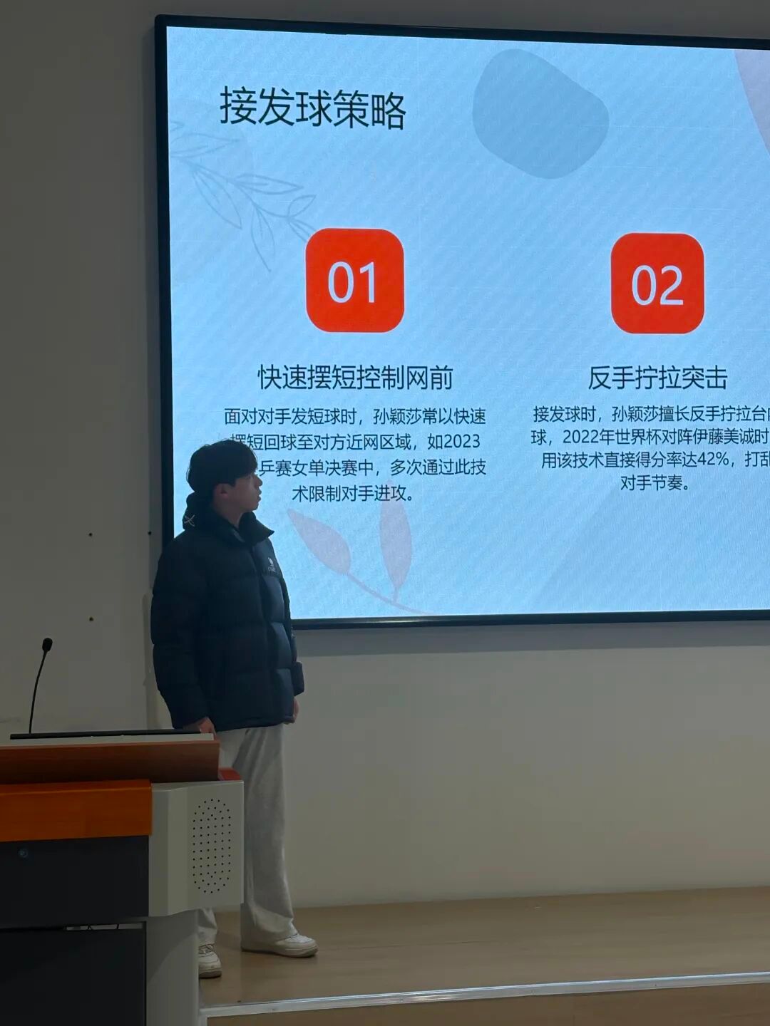 最让人印象深刻的,是我们坚持已久的课前演讲。从不照本宣科,而是巧妙地将自己的专业所长融入其中。从运动心理学谈情绪管理,以体育精神论责任担当,用生动的案例和幽默的表达,点燃同学们的思考热情。用语言传递力量,用故事诠释成长,让大家看到了体育生背后深厚的文化底蕴。